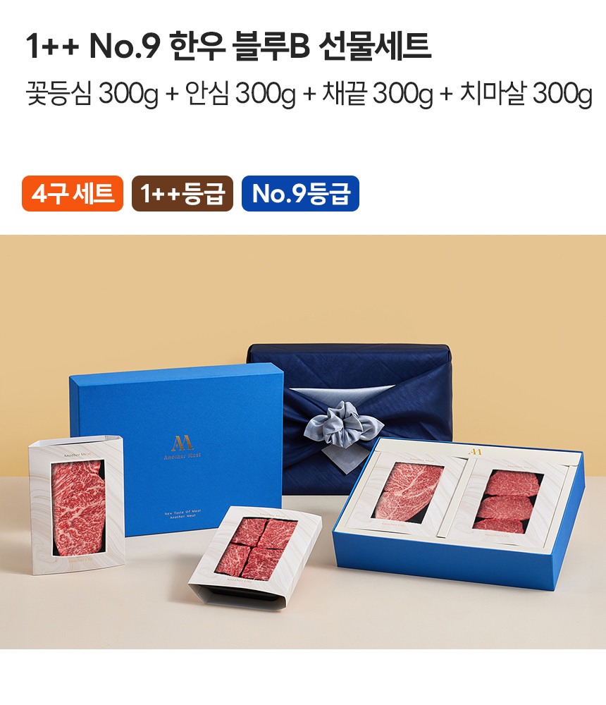 1++ No.9 한우 선물세트_블루B ( 꽃등심,안심,채끝,치마살 ) 1.2kg