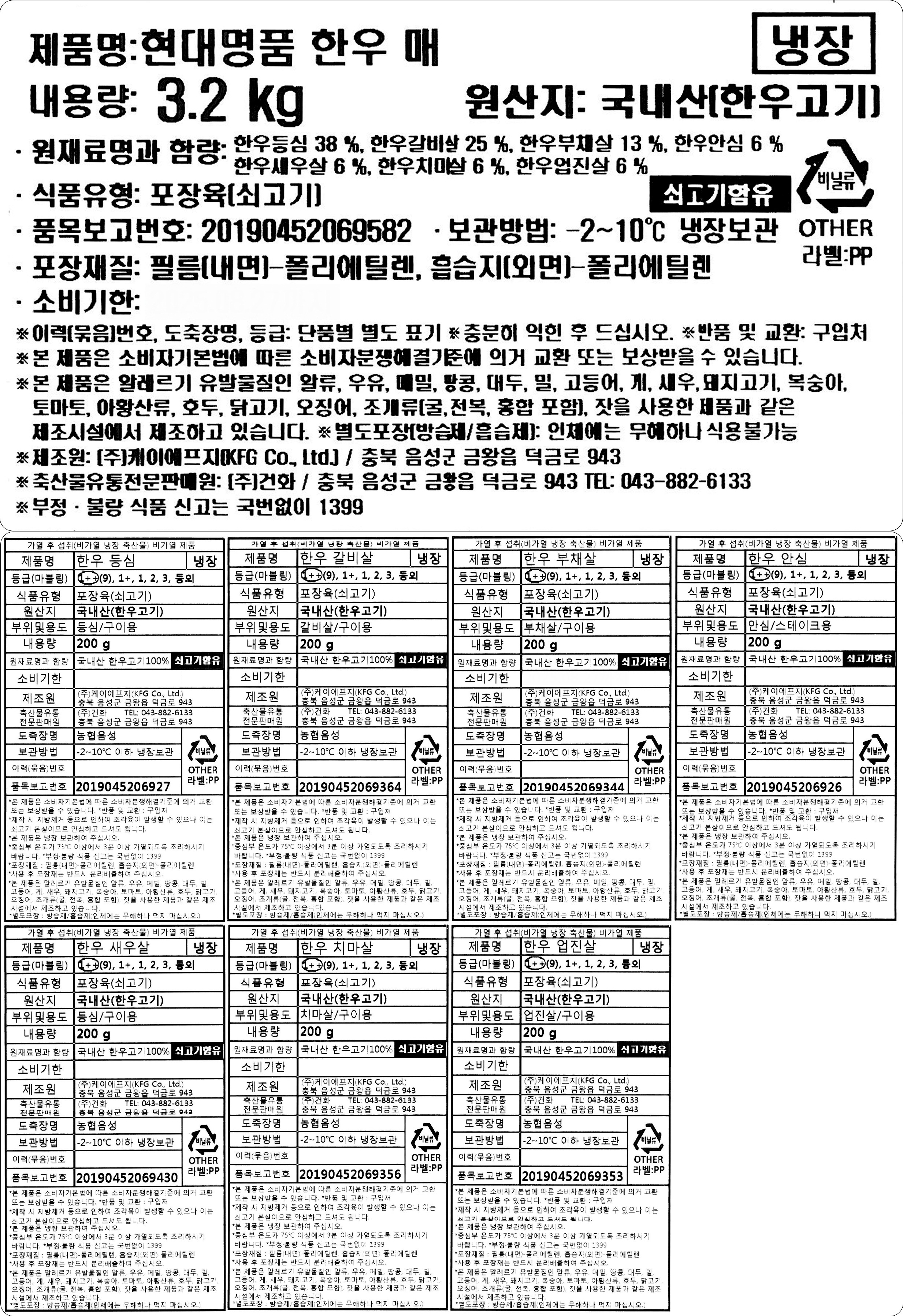 갈비살 200g×4, 치마살로스 200g, 업진살로스 200g, 부채살로스 200g×2