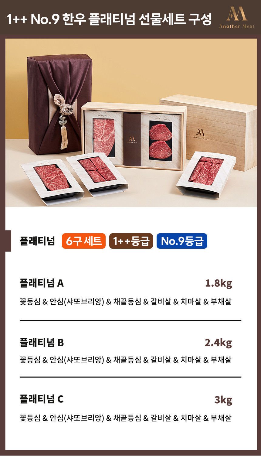 1++ NO.9 한우 플래티넘C 3kg/꽃등심,샤또,채끝,부채,치마살,갈비살 [원산지:국산]