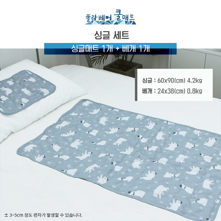 [영메디칼바이오] 폴라베어 싱글 쿨매트 그레이2종세트 (냉온매트/물베개)