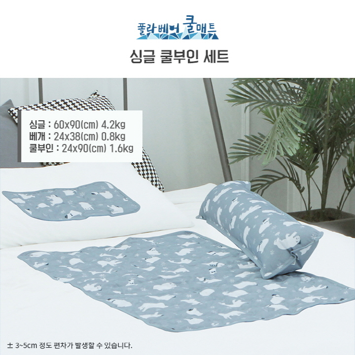 [영메디칼바이오] 폴라베어 싱글쿨부인 쿨매트 그레이3종세트 (냉온매트/물베개)