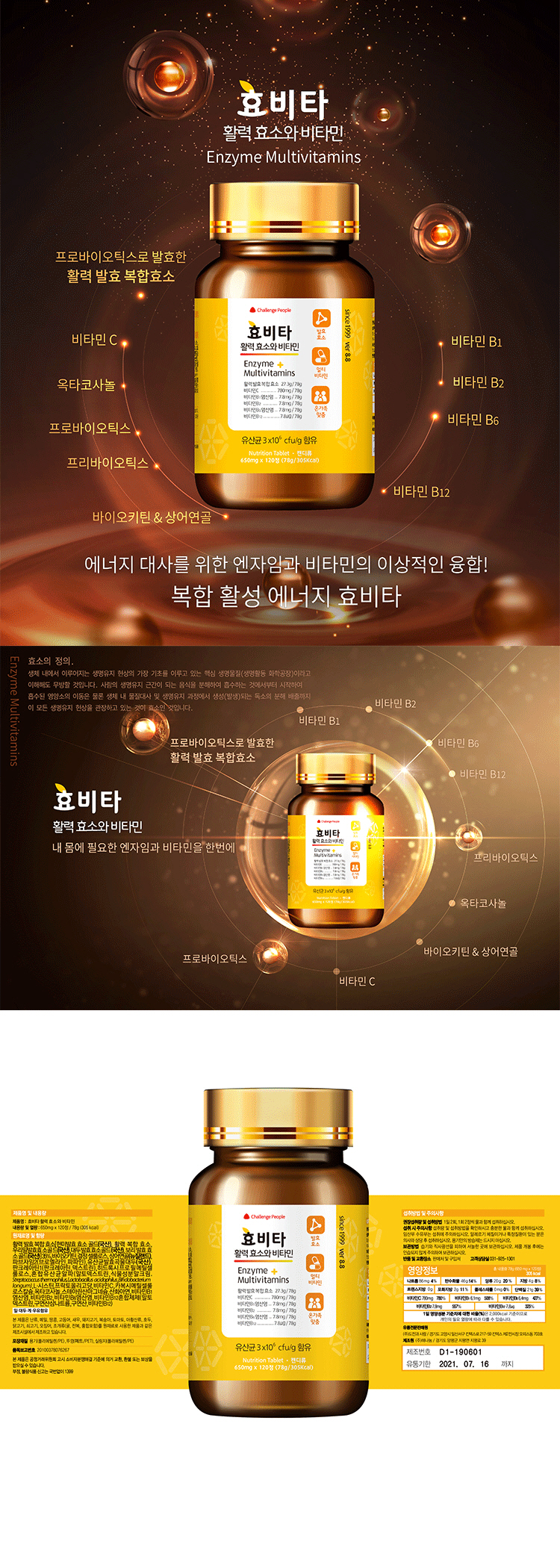 비비씨_효비타 활력효소와 비타민 650mg x 120정 1개월분