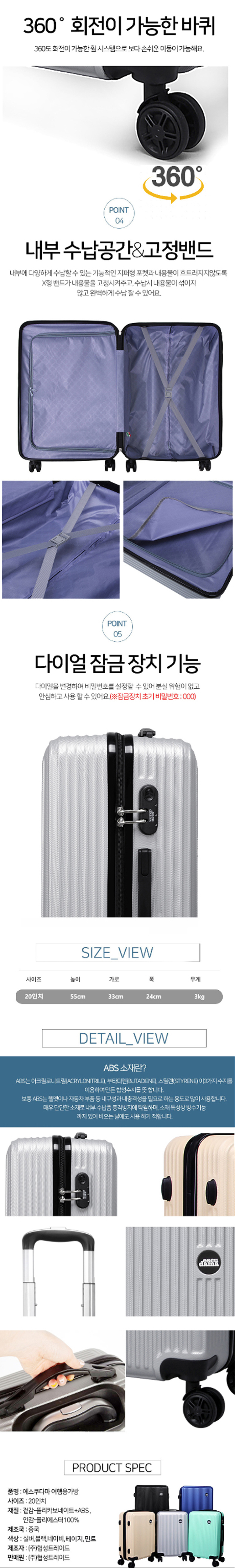 [에스쿠다마] 아로나(ARONA) 캐리어 20인치 HS-Z0520