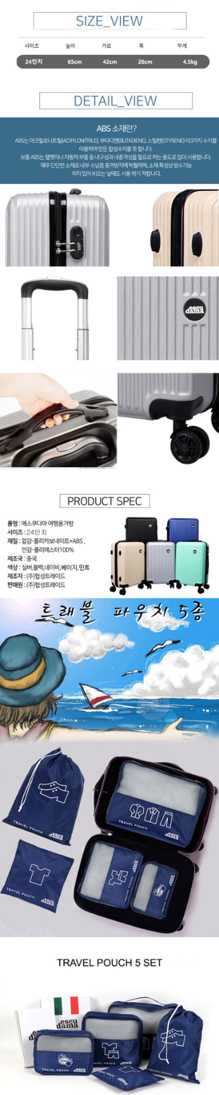 [에스쿠다마] 아로나(ARONA) 캐리어 24인치+파우치5종세트 HS-Z0524+M1708