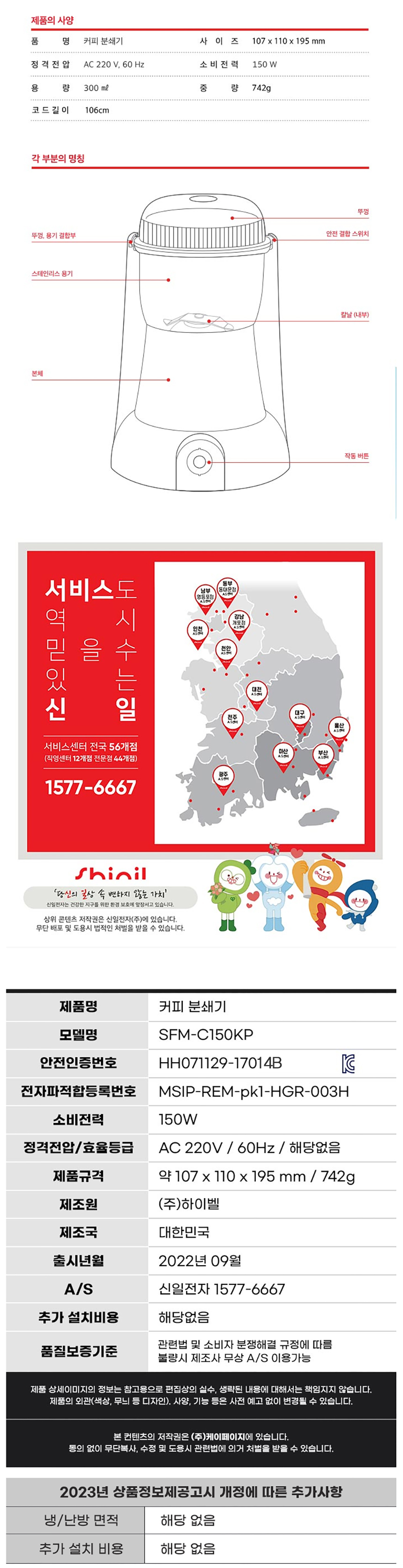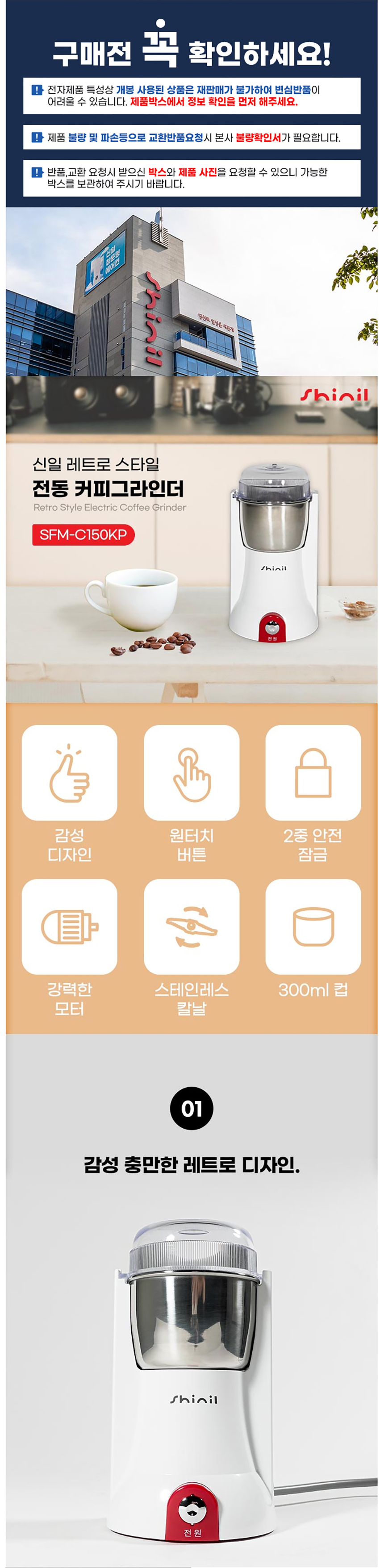 신일_ 커피 분쇄기/ 전동 커피 그라인더 SFM-C150KP