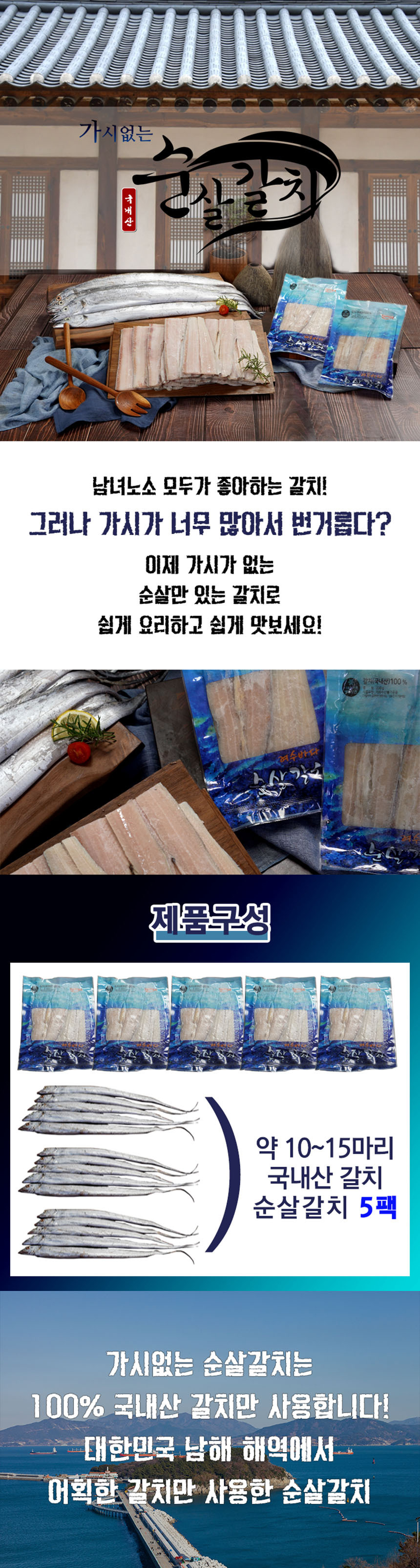 한라물산_국내산 여수 가시없는 순살갈치 손질갈치 5팩 (약10~15마리)