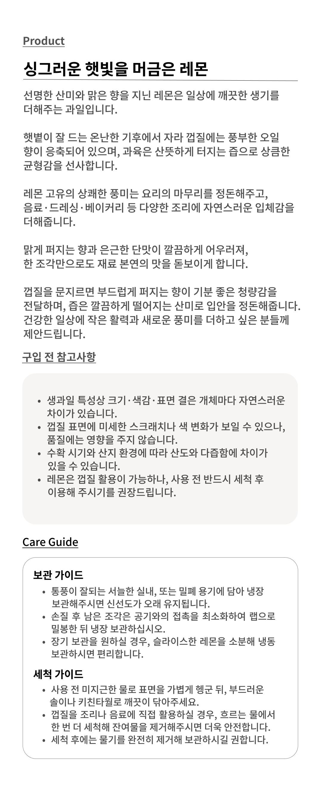 싱그러운 햇빛을 머금은 레몬 (1알)