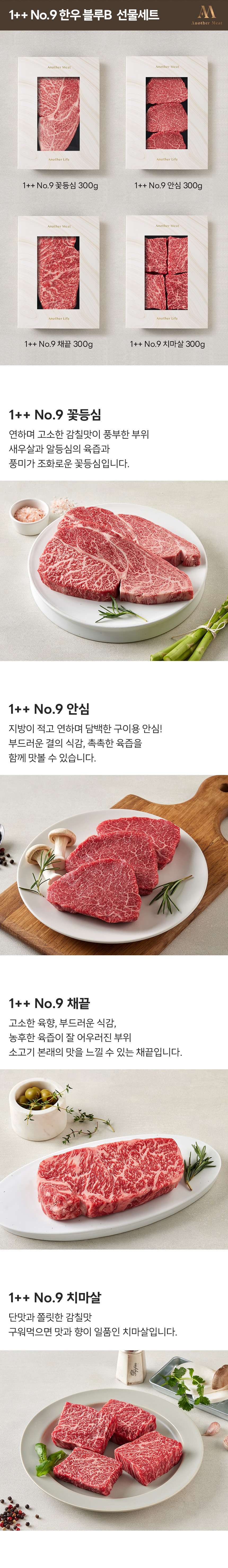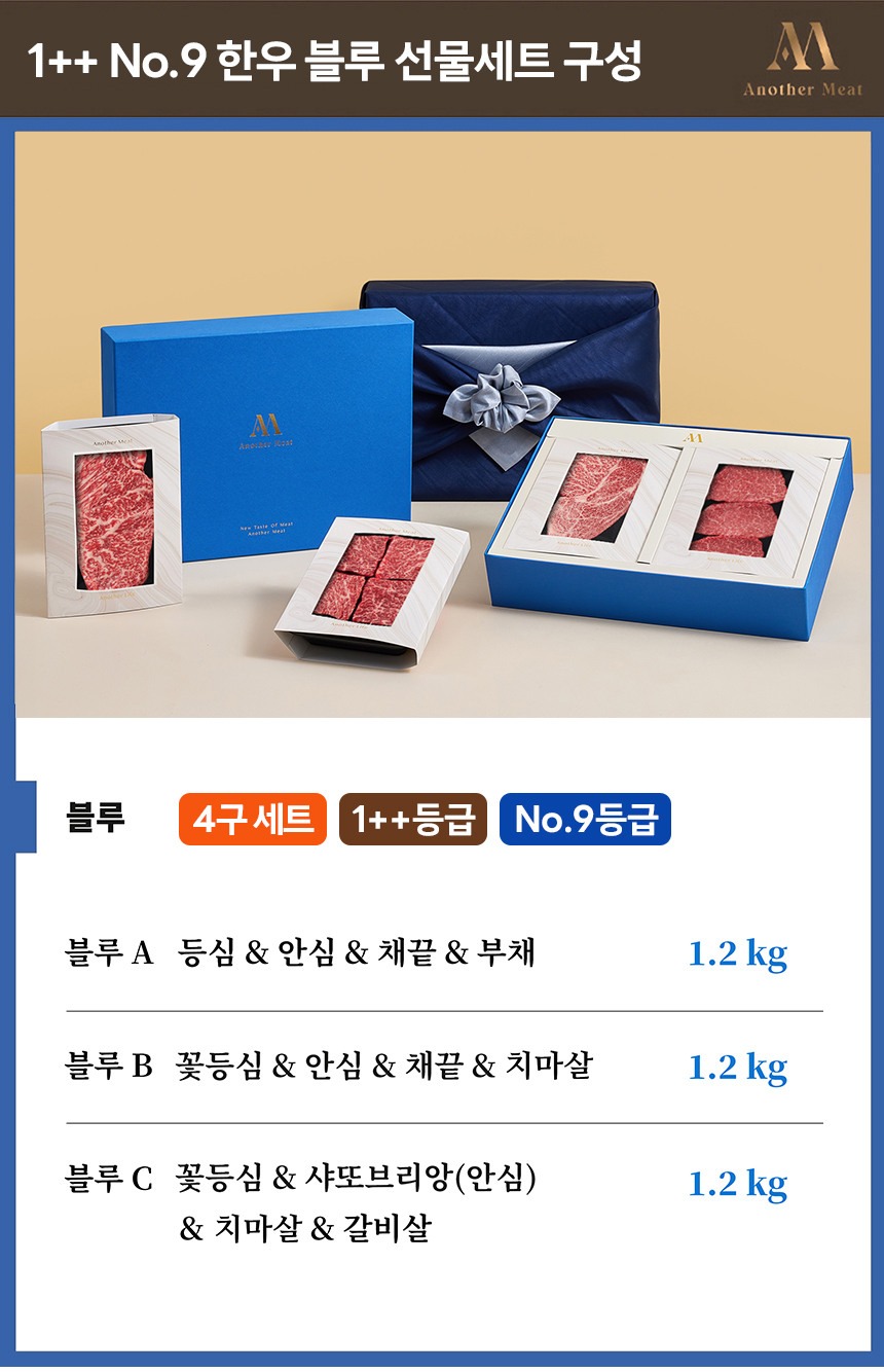 1++ No.9 한우 선물세트_블루B ( 꽃등심,안심,채끝,치마살 ) 1.2kg