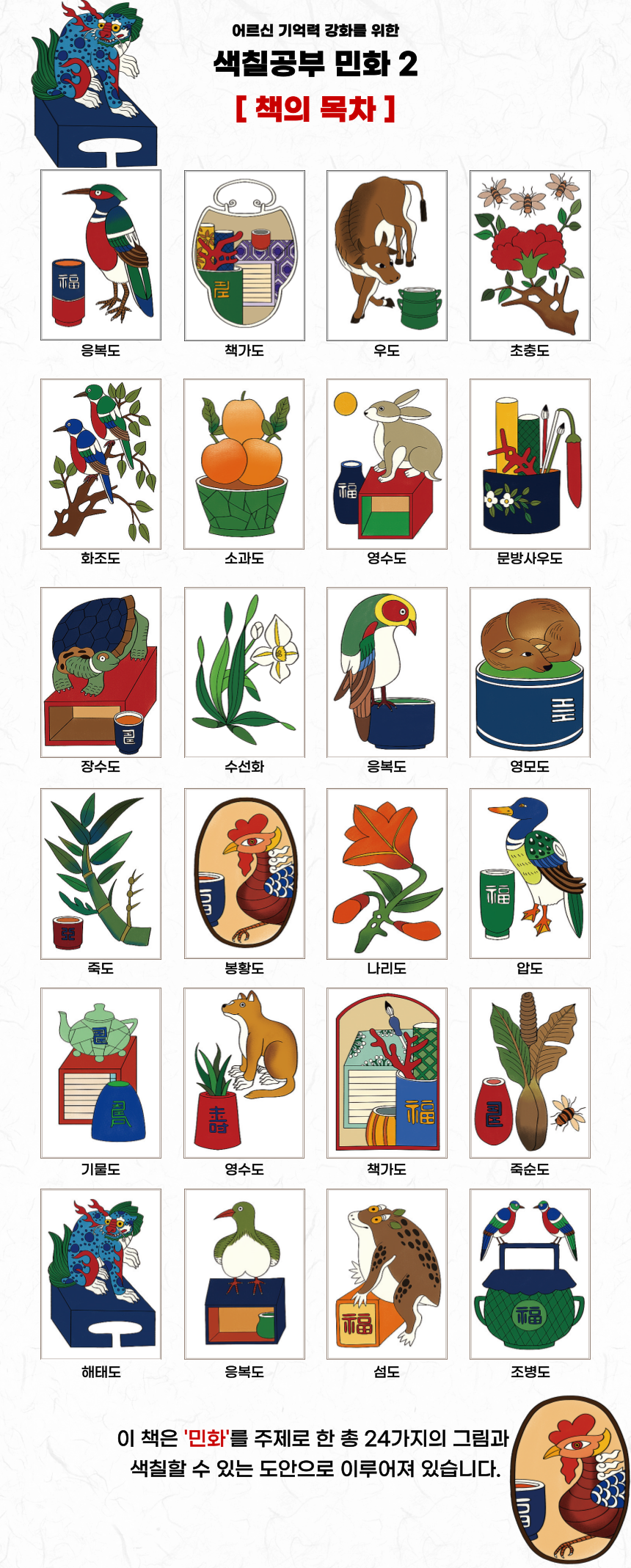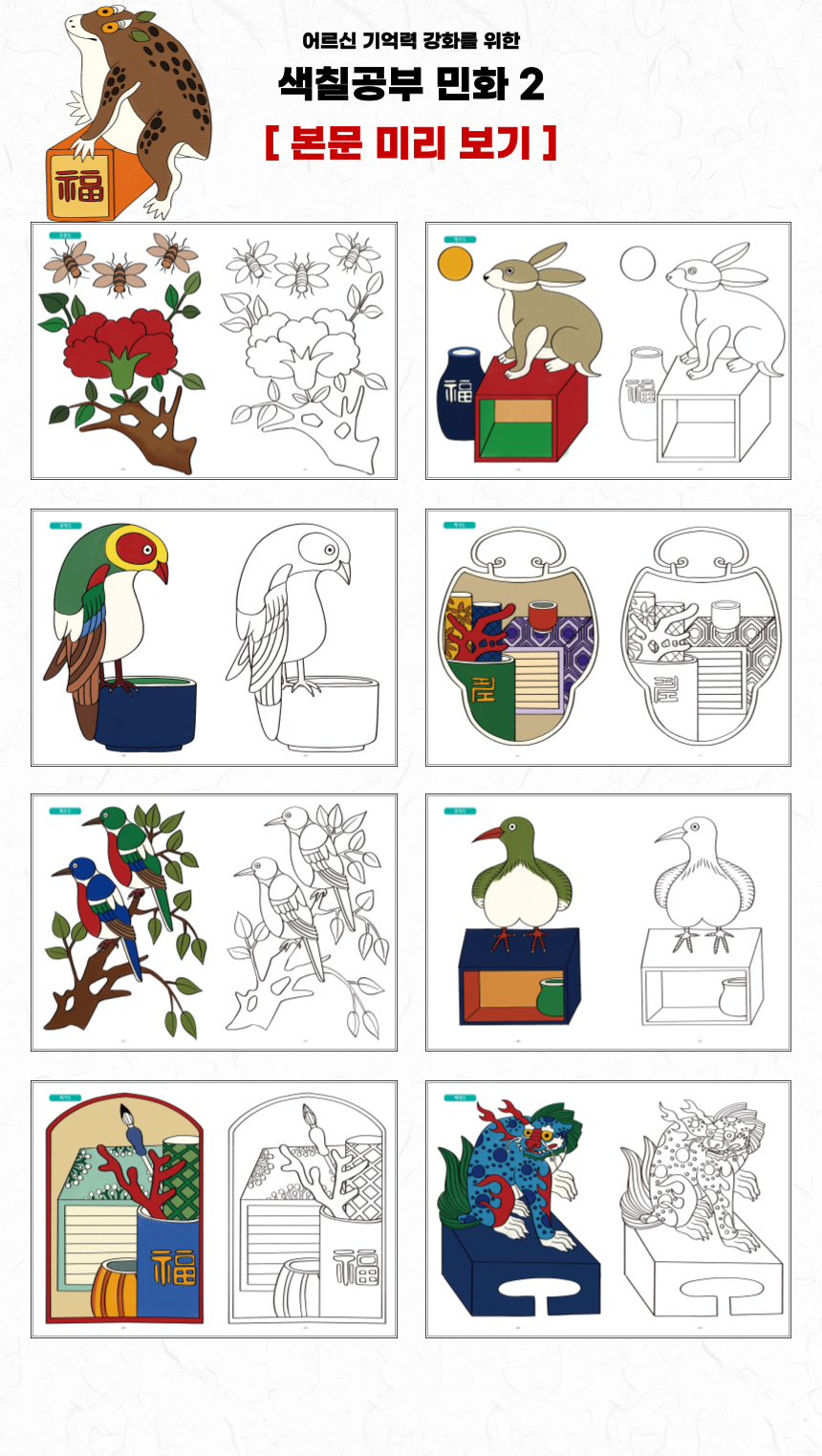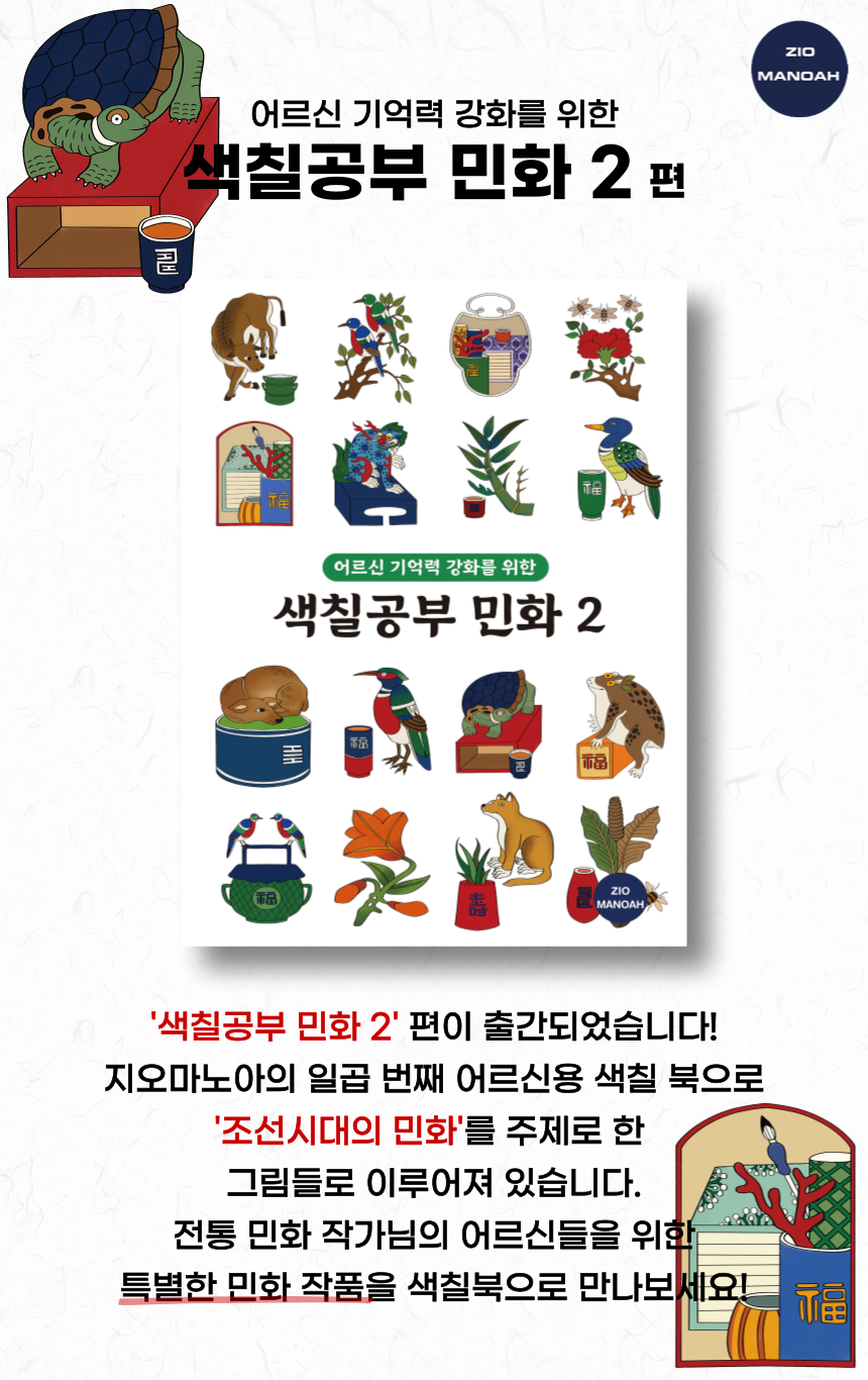 시니어 인지훈련 색칠공부 7 - 민화2 / 뇌훈련 기억력 노인그림그리기