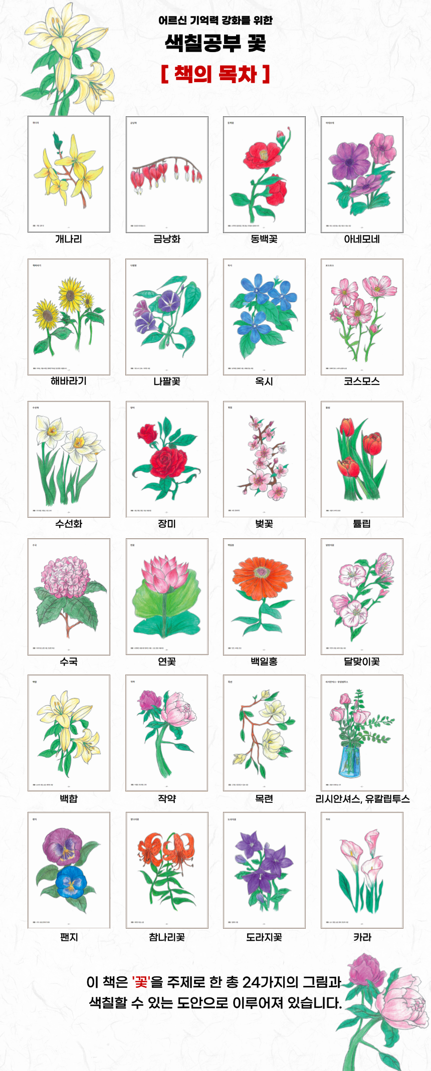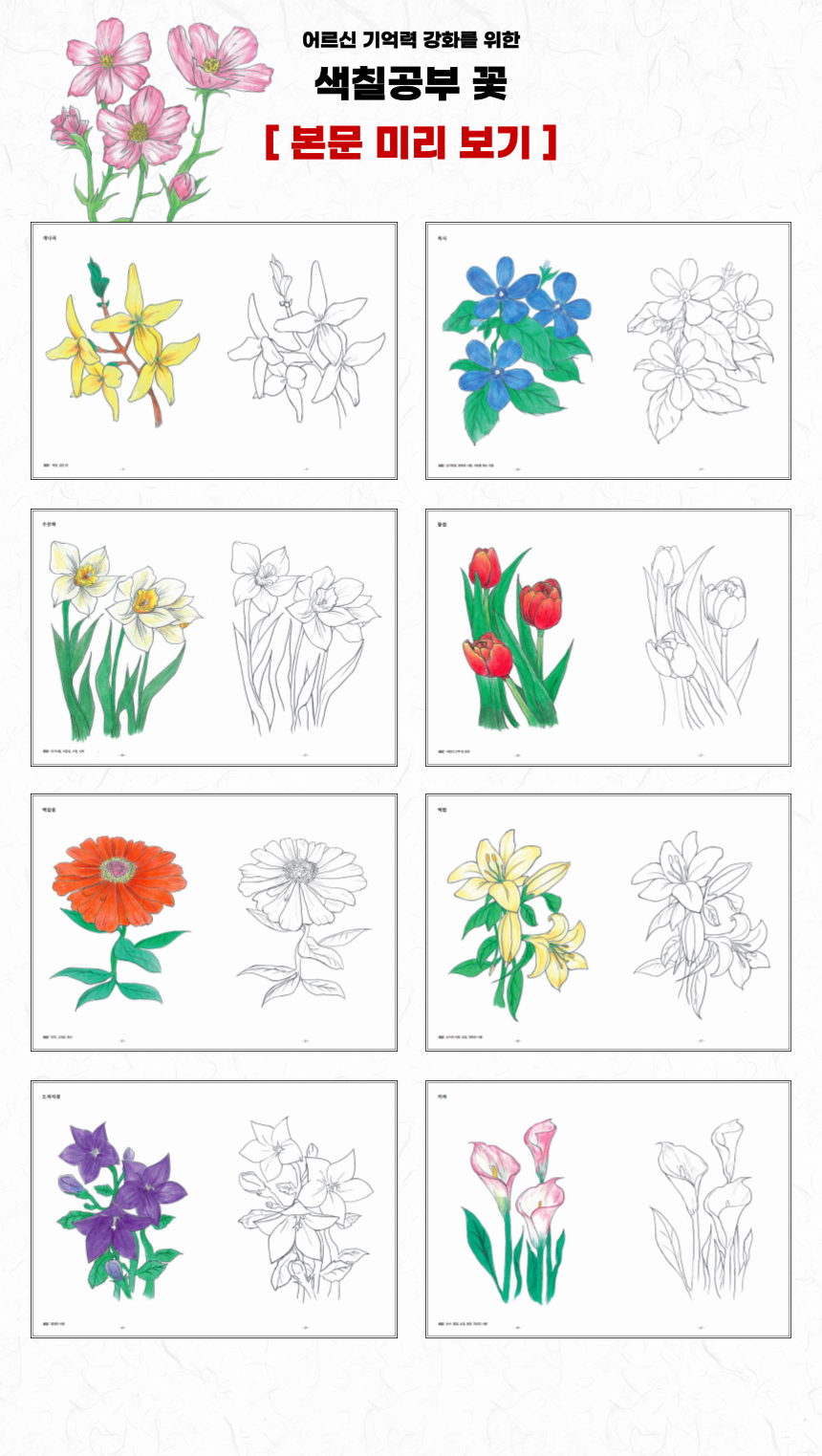 시니어 인지훈련 색칠공부 2 - 꽃 / 뇌훈련 기억력 노인그림그리기